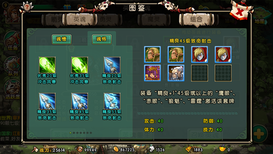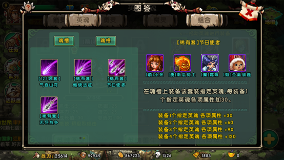 当玩家魂槽装备的英魂为指定组合时,便能给玩家带来强大的属性加成,各种英魂组合能够在图鉴中查看。