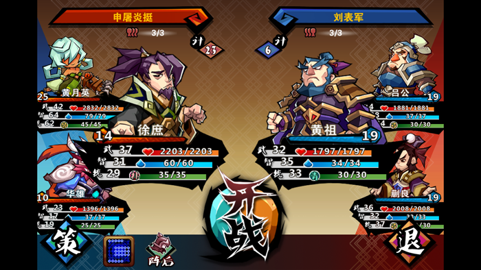 出战前可以自行设定出击角色、出击位置和阵型、策略(回复、辅助道具),但无法得知对手的情报。因战斗随机对手可能导致兵种克制,所以运气也属于游戏策略性中的一个重要变数。这也为游戏增添了不少色彩!