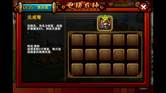 随着人物获取经验而提升等级解锁技能及天赋以外,通过训练场人物还可以学习阵法、转生、新技能。由于兵种克制对战斗有较大的变法,所以更换兵种均衡队伍调整也是必不可少的。