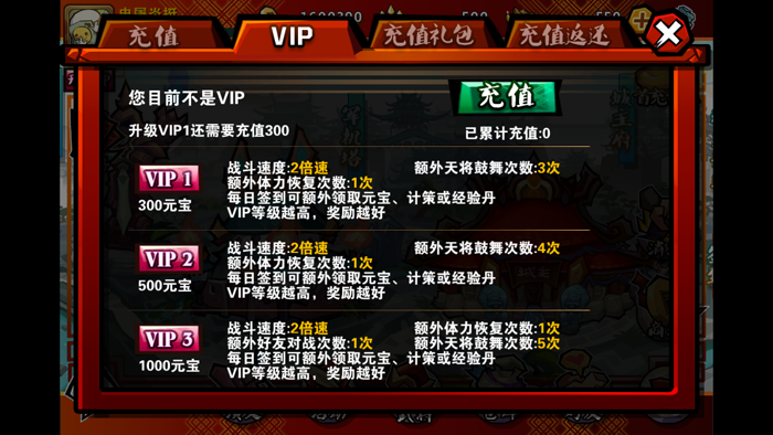 想加快完成天下统一的美梦也不是没可能,vip可以提供丰富的福利,让你在游戏过程中也可以得心应手!
