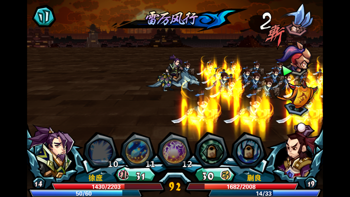 横版策略RPG,虽以《三国群英传》为蓝本,却简化了繁琐操作改为轻轻点击,即可完成开战、攻击、招募武将或是释放技能的操作,可谓简单至极。轻松休闲就掌控天下事啦!