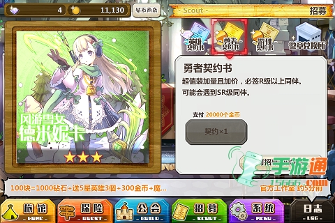 招募系统可以说是游戏真正的核心消费部分,通过钻石招募必得R级以上同伴,并有可能招募到UR级同伴。但是招募价格昂贵。考虑到平民玩家,游戏中也可用金币招募,也是必得R级以上同伴,也可能会招募到SR级别的同伴。