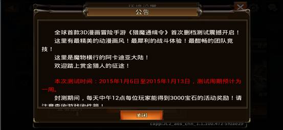 《猎魔通缉令》是风靡韩国的火爆动作RPG手游,独特精致的二次元漫画风,极致畅爽的战斗关卡,给予玩家热血爆棚的游戏体验!那小编也是听说这游戏首创乳摇系统,也是第一时间体验到了这款手游,嘿嘿。 背景故事 至高的创世神创造了阿卡迪亚大陆后,化身为五大神以更好地维护世界。但来自异世界的恶神打破了世界的宁静。长达数百年的神战之后,消灭了恶神的五大神也遭受重创,纷纷消失。信仰不同的人类分别组成五大联邦,相互之间不断混战,第四次大陆战争也即将拉开帷幕!而在此时,降临在阿卡迪亚大陆的你,肩负着承担五大神维护世界稳定的重大使命。半人半神的尊贵血脉使你可以吸收神之碎片的力量,进而展现神灵之力!你将召唤各路英雄为你作战,带领他们,四处征讨破坏和平的邪恶力量,让世界回归正常轨道! 游戏画面 设置高画面品质,在战斗系统中,画面感显著提升,后面的岩浆喷发惟妙惟肖。值得称赞的是,游戏具有性能调节,使低端手机能够运行流畅。 新手引导 新手引导体验感比较一般,没有灵活多样的选择方式,不过新手引导相对来说比较详细,走完整个流程,基本上游戏的玩法和操作都比较了解了。(最重要是有个萌妹子引导好吗) 英雄属性 在《猎魔通缉令》有多达230种的英雄,从1星到6星,每个英雄都拥有专属的外形、技能和故事;水、火、木、光相互克制,使游戏不碾压;战士、骑士、弓箭手、法师、牧师、野兽六大职业互相搭配,大大增加游戏趣味性。 战斗系统 战斗系统《猎魔通缉令》的核心系统,它采用了手动和自动两种方式,使玩家更有操作选择的空间。不管手动的灵活走位、拖延拉怪还是自动的迅速出击、速战速决都给玩家一种酣畅淋漓的战斗体验。在自动战斗中,选择视角一进行冒险,带入感非常爽使用技能和召唤好友需要手动点击按钮。 聊天系统 聊天系统通常是玩家玩手机网游必不可少的系统,《猎魔通缉令》聊天系统做一个创新,为了避免一个聊天频道人数过多,导致不管是游戏流畅度还是聊天体验都不好。于是把聊天系统频道进行了分区,经小编无聊的测试共分了100个频道。 游戏模式 游戏模式分为:冒险模式、讨伐模式、对战模式。 冒险模式 采用是逐步通关模式,允许3个英雄同时参战,不过在战斗的同时,只允许场上一名英雄进行战斗,另外两名协助,它们可以交替上场。具体副本顺序如下图: 讨伐模式 玩家通关1-11之后才能参加的游戏模式,可以获得声望、金币等等道具,讨伐可以派出9名三组英雄进行参战,每组可以挑战一个关卡可以一次性挑战三个关卡,7个关卡全部通关可以挑战终极关卡,每次挑战时间1个小时,自动化,一个小时之后再来看结果就是。值得一提的是,挑战失败是可以重新挑战的,不计次数。 对战模式 分为四个模式:无限对战、竞技场、军团战、BOSS大战。 无限对战玩家在通关1-5冒险关卡后就开启第一个关卡,无限对战顾名思义就是一直挑战到你死亡为止,也有时间限制。但实际上你三个英雄死亡一个,挑战就失败了。 竞技场冒险通关1-8就可进入,三个英雄轮流进入与其他玩家单挑,这个模式是全自动的,不需要玩家操作。经小编两三把的测试,发现那边的英雄先让队友合作,那边就能赢。玩家玩的时候可以,利用这点。 军团战冒险通关1-13进入,可以获得声望,通过声望商城兑换道具。 BOSS大战冒险通关1-13进入,可以与好友一起并肩作战。 由于军团战和BOSS大战小编未打到后面关卡就不作详细介绍了。 福利系统 福利系统是一个游戏必不可少的部分,一个好的游戏系统可能会吸引到大量玩家涌入,那《猎魔通缉令》内测的福利系统还是比较豪爽的,就不知公测之后会怎样了。 游戏商店 通过游戏商店可以看出《猎魔通缉令》的主要货币还是金币和钻石,毕竟钻石购买的礼品都是赠送金币的。根据小编经验钻石与RMB的比例如果是1:100的话,那1800钻石的十连抽还是比较划算的。(由于是内测,所以宝石与RMB比例没有公布) 乳摇系统 那说了这么多,重点来啦。说好乳摇呢,在哪?别急,有上百款不同类型的美女英雄为宅男们带来了巨大的福利——呆萌萝莉、御姐女王、傲娇女神、邻家老妹……无论你喜爱哪种类型的美女,《猎魔通缉令》都能满足你!据说在手游领域首次运用的全真动态模拟捕捉技术结合乳摇系统,可以让玩家赏析不同罩杯女性的摇晃特点,玩家还可360°无死角观察美女英雄。 总结 虽说《猎魔通缉令》在游戏优化上有一点小小的瑕疵,但这完全不影响到它的游戏体验。不论令宅男心动的乳摇系统,还是3D的操作体验,还是二次元的精美画风。都足能吸引玩家,还不快来体验?