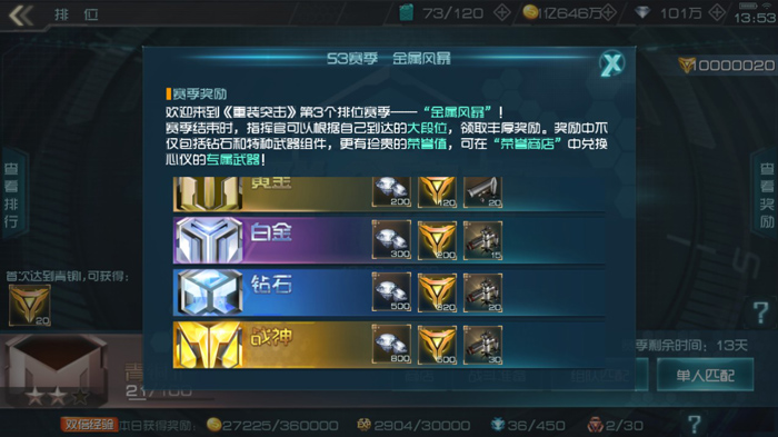 《重装突击》是网易首款多样竞技载具射击手游,在以竞技射击玩法为核心的基础上,融合了载具、驾驶员、武器等不同元素。游戏中摒弃了老旧的一二战老式载具,将现代尖端载具将近未来幻想元素结合,打造出全新概念载具,让玩家身临其境的感受令人热血沸腾的未来战场。 三大主战载具 克制关系明显 游戏中的载具分为直升机、坦克、突击车三大类,对于同类型的游戏来说,直升机这一概念的引入可谓颠覆了传统游戏玩法。在战斗中不同载具也拥有不同的特点和缺点,因此它们之间有着相互克制的关系,简单分析如下: 飞行载具直升机能够飞跃地形,而且直升机的主炮和各类副武器能够提供强劲的火力输出。但直升机的身板较脆,使用时需要靠快速移动躲避敌方攻击,因此在面对输出稳定、机动性强的突击车时会非常危险; 坦克的主炮威力惊人,并且拥有厚实的装甲,在正面遭遇战中堪称无敌的存在。但坦克的缺点与优点同样明显,笨重的身躯加上较为迟缓的攻击,使得坦克在遭遇直升机骚扰时会显得非常无力; 突击车拥有不俗的火力输出以及优秀的机动性,能够迅速出现在战场的各个角落进行突袭和支援。但由于突击车的身板同样有些脆弱,如果在遭遇战中正面遇到敌方坦克,很有可能直接被两炮打回家! 综上所述,在游戏中的不同载具的克制关系为:直升机>坦克>突击车,所以我们在选择载具时需要均衡搭配,避免出现被敌方载具针对而我方无法反制的情况。 武器选择多样 合理搭配有奇效 除了各类载具的主炮之外,我们还可以携带两种不同的副武器,副武器分有机关炮、导弹、无人机、支援小队等不同的类型。合理搭配不同的副武器能够弥补载具的缺陷,让所选载具在面对任何类型的载具时都能有一战之力。 以坦克为例,在战斗中坦克的主炮需要装填,射速较慢,因此在火力真空期只能被动挨打。所以我们可以选择机枪作为一号副武器,这样可以使坦克在主炮装填期间也能保持火力输出,二号副武器搭配上火箭弹或无人机,能让我们更好的补充伤害进行收割,同时也能够让坦克在面对直升机时不至于毫无还手之力。 在武器属性方面,部分副武器拥有特殊效果。以上图中的“拦截者”火箭弹为例,该导弹不仅能够快速发射,还拥有不俗的范围攻击伤害,非常适合用来攻击扎堆出现的敌方单位。 PVP玩法多样 总有一款适合你 相信在看完载具和武器相关信息后,各位小伙伴最关心的还是游戏玩法。在游戏的PVP环节中有占领、突袭、攻防和护送四大模式,下面我们就来一起看一看。 占领模式 在占领模式中,双方需要做的就是控制地图中间的黄色区域。当一方开始控制占领区域后,另一方的积分就会持续下降,当其中一方的积分率先被扣光时,另一方则获得比赛胜利。 突袭模式 以团队为阵营,计分板会将全队所有成员的战绩相加,当任意一方率先击毁25架敌方载具后即可获胜。 攻防模式 攻防模式下双方需要在战场上搜集散落在战场四周的导弹,成功搜集导弹后,上缴至地图中央的中立导弹发射车即可召唤导弹攻击对方基地,率先击毁敌方基地的一方获胜。 需要注意的是,如果携带者导弹的玩家载具被击毁,那么他身上所携带的全部导弹都会掉落在死亡点,所以如果不想像笔者这样当个“快递员”帮敌方搜集导弹的话,还是不能太贪心哟! 护送模式 该模式下双方分为两大不同阵营,护送方的任务是护送运输车抵达终点,而拦截方则需要不惜一切代价阻止运输车抵达终点。 护送方玩家在游戏开始前可以选择自己的职责,分别为“驾驶运输车”和“保护运输车”,并且在申请驾驶运输车的玩家中挑选一名负责驾驶。除了这名玩家外,其他护送方玩家都会成为保护者。而在成为运输车驾驶员后,你的任务只有一个:驾驶运输车抵达终点。 拦截方玩家则需要在每个检查点阻击运输车,并在运输车抵达第三个检车点后利用最后的决战时间将其摧毁。 混战模式 混战模式属于个人战,在该模式中10名玩家各自为战,视野内出现的所有除你以外的目标全是敌人!率先获得15次击毁的玩家即可获胜。 混战模式中,笔者个人推荐使用的是直升机,因为直升机的机动性和火力都非常不错,因此在这种混战的战场中即使打不过也能全身而退。 相信已经有小伙伴好奇,小编在上图中得到的成就是什么意思。在混战模式中,每隔一段时间地图中都会出现一块黄色区域,在占领该区域一段时间后能够获得巨大载具,这时你所控制的载具攻防血量都会变得非常可观,在变身持续时间内你在这片战场中完全可以横着走。所以能否获得巨大载具的控制权,很大程度上决定了这场游戏你是否能够获胜! 排位模式 排位赛于每日的12:00-14:00和19:00-22:00开放,在排位赛中可获得荣誉值、竞技积分以及天赋点。想要开启排位模式有两个硬性条件: 拥有至少一辆A级以上的载具; 曾经参与过5场或以上的的团队模式PVP比赛。 并且排位赛采取公平竞技模式,无论玩家间的载具、副武器和驾驶员的等级差距有多大,在排位赛中都会被设置为相同或非常接近,最大程度度的确保排位模式中的公平性。 在排位赛中,分为青铜-白银-黄金-白金-钻石-战神五大分段,每个不同的段位都会在赛季结算时给予段位奖励。 在排位过程中获得的荣誉值和竞技积分,可以从荣誉商店中购买各种强大的武器和强化组件: 天赋点则可以升级驾驶员,提