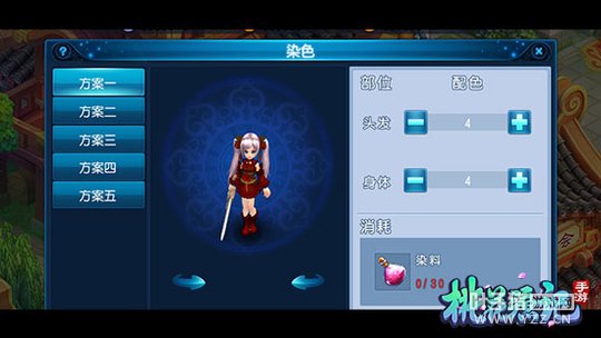 《桃花源记手游》中不仅有让人身临其境的场景地图,还有百变染色系统,玩家可以选择不同部位的颜色随心搭配,让角色变得更完美。
