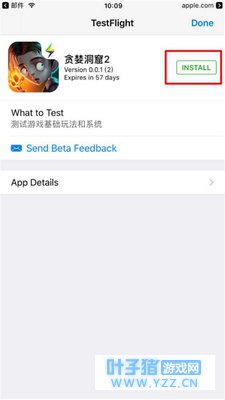 B.若您使用iOS设备自带的邮箱打开邮件,点击【View in TestFlight】按钮后会直接跳转到TestFlight应用,点击【INSTALL】按钮即可开始下载安装游戏。