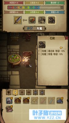 点石成金为将物品品质转为金色,可以带出。 最后少不了boss战。然而boss战特色不是很明显,没有复杂的操作,但是二十层一个的boss把游戏分成了一个个阶段。