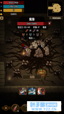 以上图片,分别展示了,游戏内地图系统,画风,陷阱系统,以及战斗系统。也显示了任务系统。 我们最在意的自然是战斗系统,这是一个类似于回合制的对打,按照武器速度自动做出进攻,供玩家选择的有技能与蓝红瓶。或许你觉得这很无聊,但注意!这游戏最好玩的地方绝不是所谓的战斗!