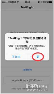 接受条款后,会弹出发送推送通知确认界面,请点击“好”后结束配置。 【第4步】:用手机查看预约时留下的邮箱,获取苹果公司发送的“游戏客户端”下载通知邮件