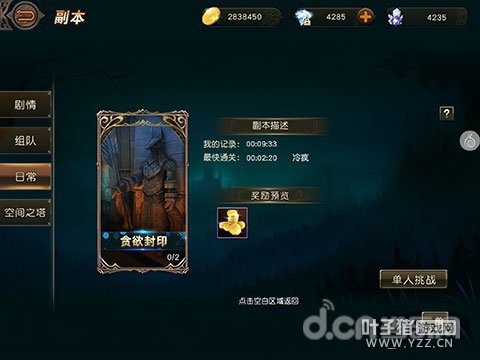 挑战副本 副本可以说是金币的最大来源了,其中日常副本中的贪欲封印常常被成为金币副本,玩家击败守护者并击破宝箱可以获得大量的金币奖励。除了贪欲封印外,空间之塔也是获取经验的场所之一,每天不要忘了去扫荡哦。