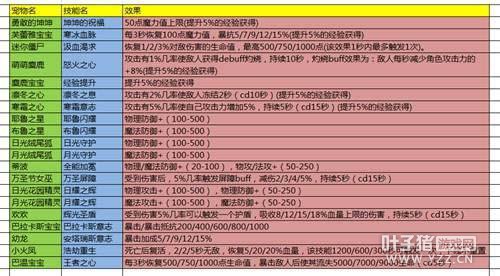 天堂2血盟 “叁王者重生”宠物技能解析表