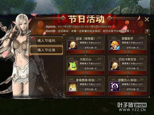 单身贵族称号 甜蜜恋人称号 情人节活动:收集情人节甜心兑换道具 宠物、称号还有大量消耗材料,这些节日道具都是通过情人节甜心来免费兑换的呢!所以,各位天堂勇士赶紧努力收集甜心吧。而玩家每天完成运营活动,均可免费获得一定的“情人节甜心”,等攒够了就可以去兑换了哦。