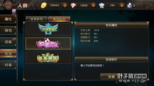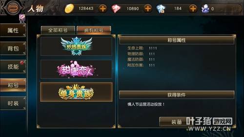 甜蜜神宠 获得方式:用情人节甜心兑换。 专属称号:单身贵族和甜蜜恋人 不管你是单身一人还是甜蜜二人,本次情人节特典都准备了适合你的订制称号!单身贵族和甜蜜恋人,分别有一定的属性加成,注意看加成数值有亮点哦。获得方式同样是用情人节甜心进行兑换!