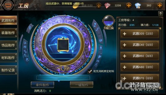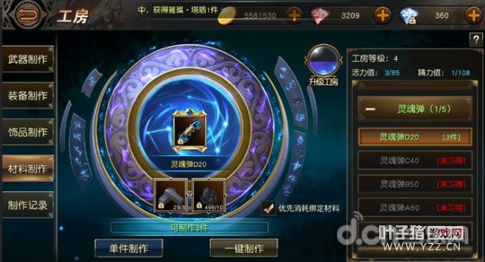 那么就把我们采集到的矿石做点东西吧。我们刚才在商店购买到了 焦炭,现在就开始用上了。那么我们开始做灵魂单,用来升级工房等级。