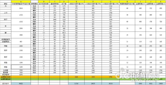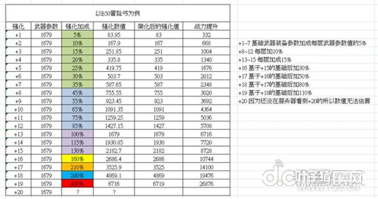 另外我把每个阶段的强化加成与附魂加成所提供的属性战力提升整理成表如下: