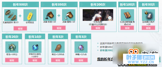 02祈年盛景礼 祈年每达成1档成就,全部祈年玩家即可获得更多奖励。