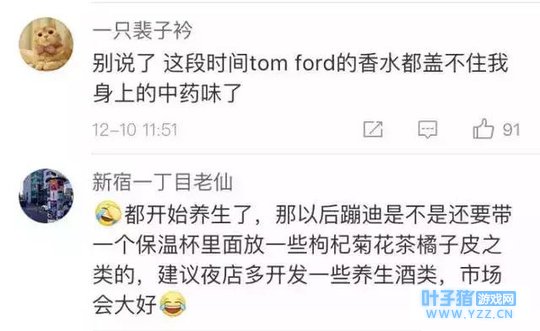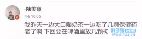 …… 前半生的浪荡 ,后半生的煲汤。一边熬夜还要一边涂眼霜,孜孜不倦地熬夜,勤勤恳恳地护肤。啤酒放枸杞,可乐加党参 。喝最烈的酒,坐最贵的救护车…… 90后开始了浩浩荡荡的养生风潮,也不知道真的有多少人认识到身体的重要性,希望你们都能好好照顾自己,毕竟我们还要一起相约老年迪斯科呢 ~