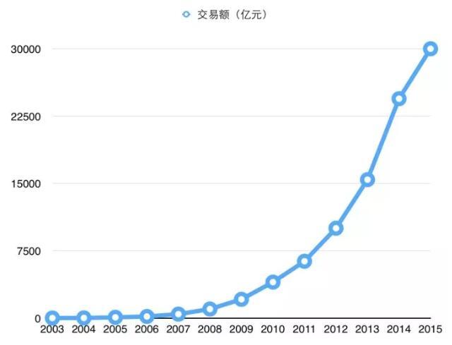 回首当初,在那个年代市场是电商的天下, 淘宝2003年成立全年交易额为2271万,这个数字在一年后涨到了10亿。 并在2003年推出支付宝解决信用系统后促进了淘宝交易增长。 2005年的交易额为80亿,随后几年成倍数增长,2012年达到了10007亿元。