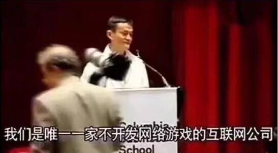 “我们坚定地认为 游戏不能改变中国 ,中国本来就是独生子女家庭, 孩子们都玩游戏的话,国家将来怎么办? 所以游戏我们一分钱也不投。人家投,我们鼓掌,但 我们不做,这是我们的一个原则 。” 2013年, 马云在哥伦比亚大学商学院的演讲中非常自豪地讲道, 阿里是唯一一家不开发网游的互联网公司。