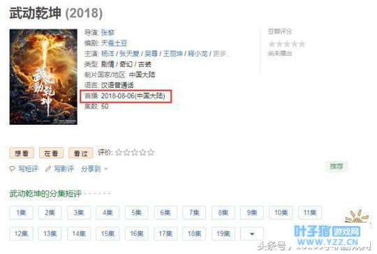 但是就在这几天 这部剧似乎有消息了 虽然仍然没有官方消息 但是在优酷手游APP手游正在热播板块 出现了武动乾坤电视剧预告 并且右下角显示“即将震撼独播” 而在微博上#电视剧武动乾坤#也上了热门话题榜 同时也开启了武动乾坤升境榜活动 然后小编兴致勃勃的跑到豆瓣一看 果然定档首播2018-08-06