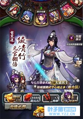 招募天下英雄培养精英伙伴 在游戏中,玩家可以通过培养不同的英雄来搭配出不同的战斗阵容。普通资质的英雄可以通过关卡获得,资质优秀的英雄也可以通过搜集英雄碎片来招募,一些资质超群的精英英雄(如绫清竹)则可在玄天殿或活动中获得。阵容界面可对英雄进行全方位的培养,通过激活灵药来提升和突破英雄的战力,修炼强大的技能来让战斗效果事半功倍。玩家也可以对英雄进行道具装备,每个英雄都有自己的缘分,装备具有缘分的特定装备,将会激活隐藏的增益效果。