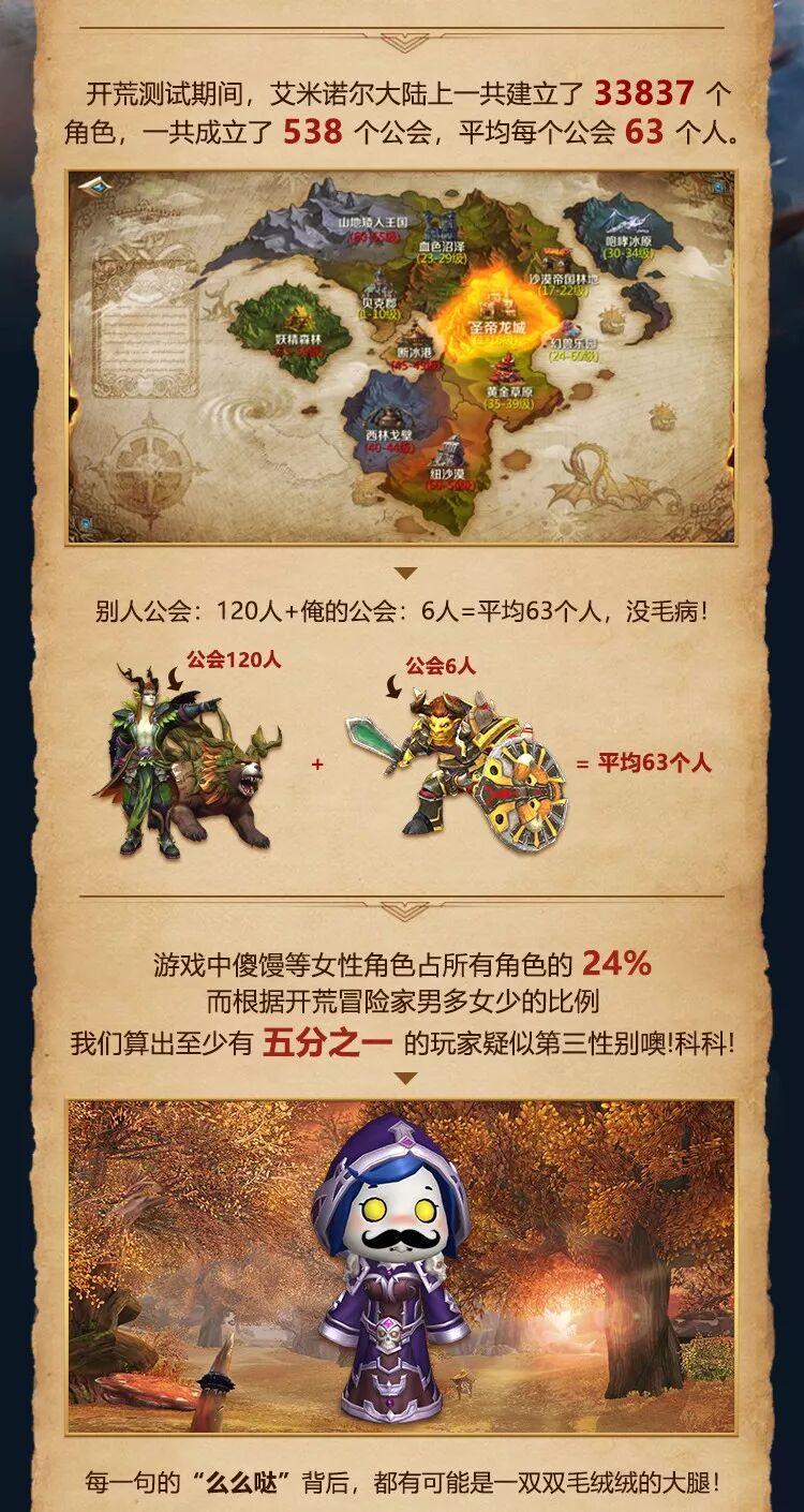 比如 “进入艾米诺尔大陆的 冒险家们中有 多少女生? ” “战士是不是 最受欢迎的职业? ”