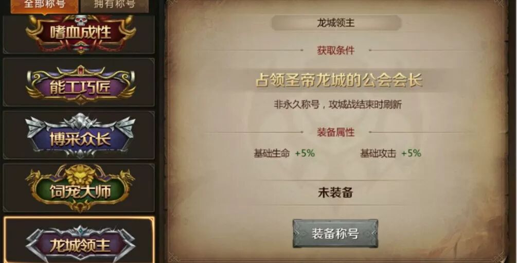 占领圣帝龙城的公会会长 可以获得 专属称号 和 专属坐骑