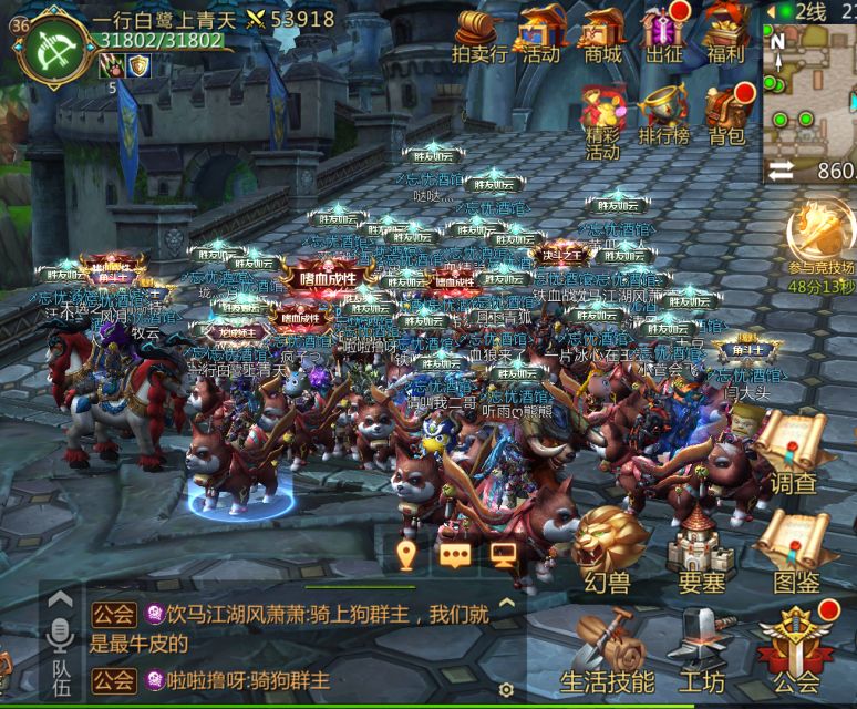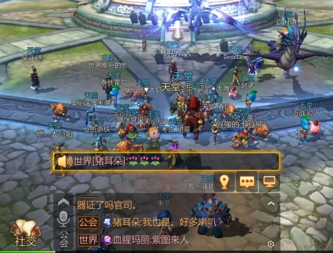 整体氛围还是 很活跃 的,这里提一下我们 公会的 精灵宝贝 —— 小仙女 。每天都在公会喊组团,世界频道有人喊她也去,像着了魔一样。我觉得她每天都可以把友情点能买的东西全部买光。