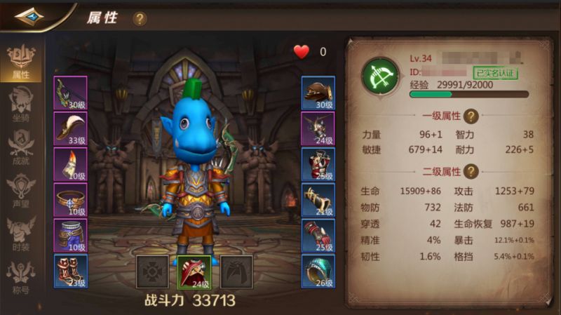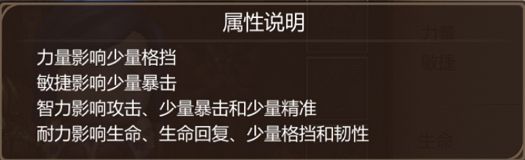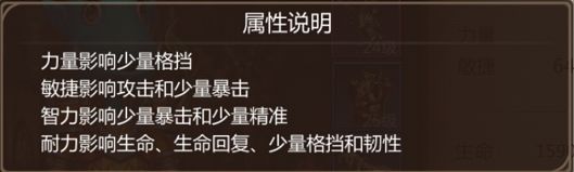 属性又分为 一级属性 和 二级属性 一级属性分为力量、敏捷、智力、耐力四种 每种职业的 一级属性 增加 的 二级属性 都有些微差异