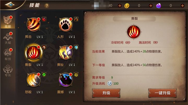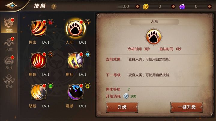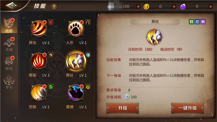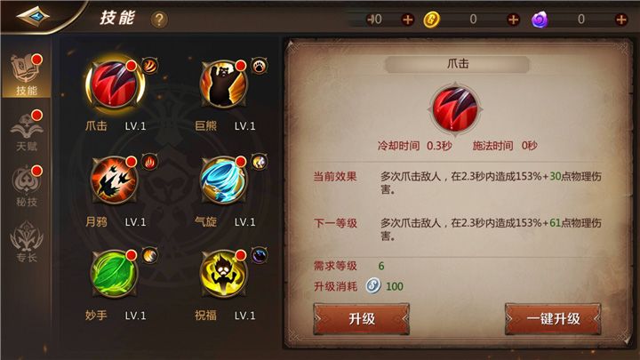 【特点】单体,高伤害 作为人形态的守护者,爪击是小德主要的 输出技能 , 5级 就能够造成 153%+153点 物理伤害。