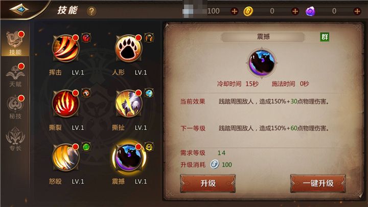 【特点】AOE,回血 熊状态下的 中等AOE伤害 技能,配合撕扯聚怪后,直接震撼打一波伤害,可以说是十分强力了!