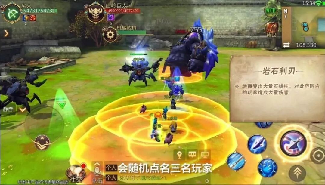 Boss的岩石利刃会 随机点名 三名玩家,玩家身下会出现圆圈范围的 利刃突刺 。噢,小德建议这时候可以 集中站位 ,重叠攻击范围,更利于之后的散开躲避。