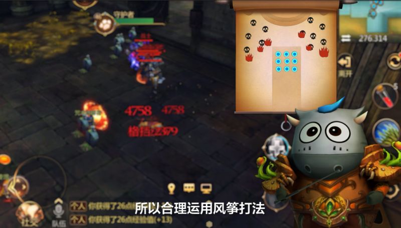 小德建议怪物尽量集中 在两侧消灭 ,一旦骷髅兵被召唤出来,众人往中间红毯退, 拉开攻击距离 。因为骷髅兵数量压制,坦克是很难硬抗的,所以 合理运用风筝打法 , 法师劣人迅速A掉 。