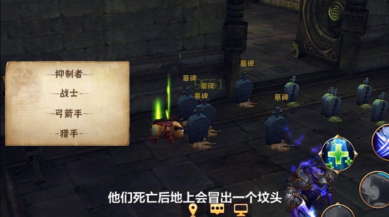 剩下来需要重点说的是这四组兵种( 抑制者、战士、弓箭手、猎手 ), 它们死 亡后 地上会冒出一个 墓碑 。