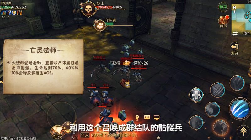 压轴出场的 亡灵法师 会利用墓碑 召唤成群结队的骷髅兵 ,一旦出现立即 面临灭团 的危机点。