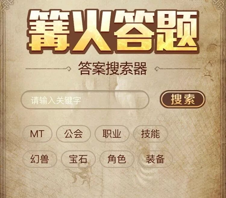 ✦时间有限!大家第一要务要保证 网速手速 都要快! ✦善用 答题器 和搜索框下的 关键词 ,查找完答案后可以点击答题器的 “进入游戏” 按钮,跳转回游戏页面! ✦善于利用自身的资源,厚脸皮地请求篝火旁聚集的 公会小伙伴 一起对答案! ✦心里默念三遍哀木涕,俺会用脑电波把答案传给你!