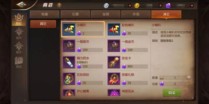 除了上述方法,还有 其他渠道 能获得金币,比如完成 游戏特殊活动 和每 日活动(100点活跃度) ,直接使 用符石(充值货币)换金币 都可以获得大量金币。