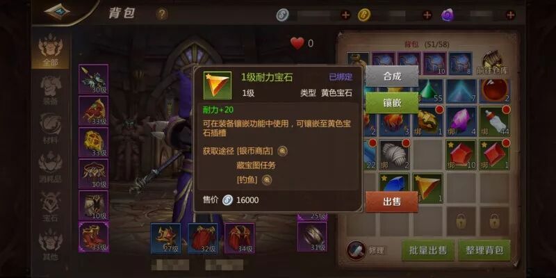 挖掘 藏宝图 可以获得 各种宝石 ,但是一个战士挖到了敏捷宝石要怎么办?一个咒术师挖到了力量宝石又该怎么办?毫无疑问,卖掉!一个 1级宝石可以卖16000银币 ,只要我们每天挖藏宝图,一定能获取大量不需要的宝石,卖掉他们,银币就来了。