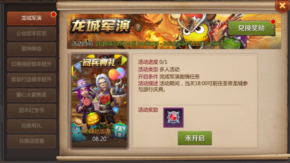任务4:节日游行 活动时间:8月20日 18:00 击败恶龙军团的入侵后,帝国卫兵会将在主城举办游行阅兵,龙城居民们也都将出门参加庆祝。