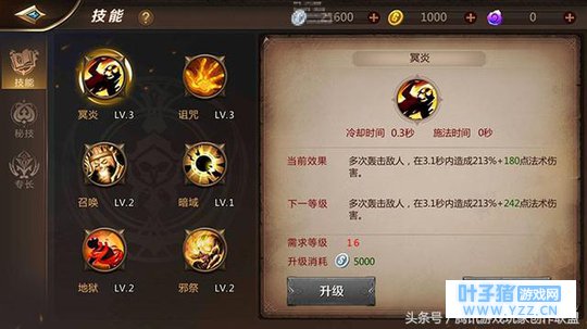 【冥炎】 【特点】:高伤害,高增长 【解析】:作为咒术师的普攻技能,冥炎拥有着高达213%+180点法术伤害输出!而后面高达62点每级的高增长,简直是让这个普攻如虎添翼,有着逆天的伤害。