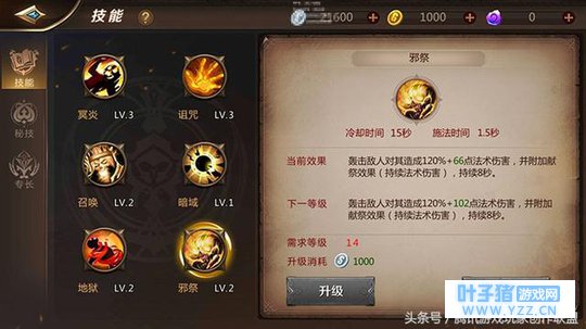 【邪祭】 【特点】:持续伤害 【解析】:作为单体技能, 邪祭跟其他技能不同的是,在造成伤害后,还能够附加一个长达8s的献祭BUFF,与游侠的毒箭相似。