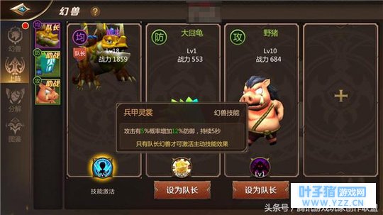 幻兽的玩法,最多可上阵4个幻兽,幻兽作为队长出战时主动技能才生效。幻兽需要耐心培养才能发挥出强大的实力。通过幻兽升级、幻兽升星和幻兽觉醒来提高幻兽的能力。幻兽食物是幻兽升级的关键,幻兽的食物主要来源于要塞任务和保卫幻兽活动。幻兽升级后,幻兽的基础属性会有较大幅度的提升。