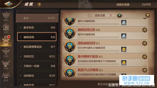 当小伙伴们等级高了之后,就可以快速完成一些低级成就了,其中副本类成就就是一类非常好的“刷分”成就项目。小伙伴们经历的第一个副本是幽咽溶洞,在我们等级较低时,是很难完成幽咽溶洞的一些成就的,比如速胜成就,要求5分钟内通关幽咽溶洞。