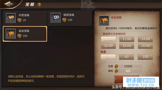 另外,公会会长还可以购买公会宝箱,购买公会宝箱后,大量公会宝箱会在指定时间出现在公会驻地中,公会成员可以自行前往公会驻地开启宝箱,获得奖励!