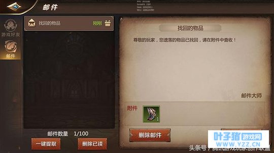 此外玩家们在摸装备时,很容易碰到背包满仓,装备会莫名其妙消失的情况。不用担心,邮件大师会贴心的把你摸到的装备发到个人邮件箱里,我们只要整理背包后领取就好了。