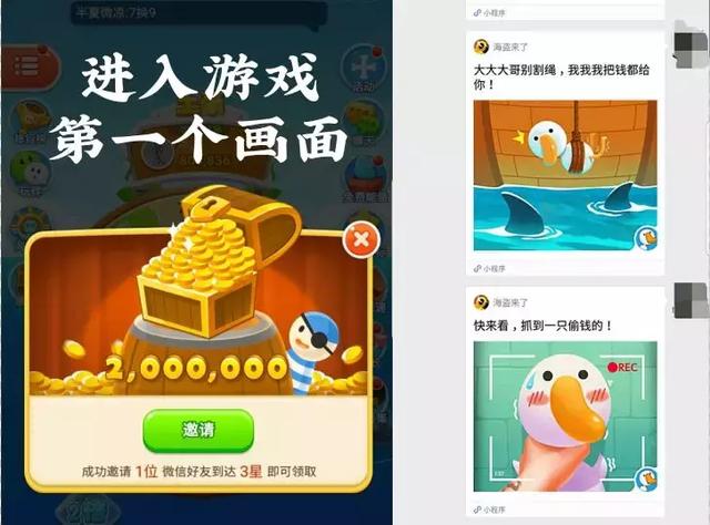 这么一款微信群污染的游戏竟然上了微信公开课?成为了小游戏的代表? 腾讯最“逗”的事就是把《海盗来了》流水过亿当成一种标杆去力捧,DAU(日活跃用户)过2000万拿出来说事, 从数据上来看,这款游戏确实很“漂亮” !甚至真的可以当成爆款,但是这种爆款是建立在什么基础上? 是抄! 1.恶意分享视而不见 首先,微信拒绝“分享滥用”这个分享滥用怎么评判呢?就是游戏如果结束一定要有跳过选项,并且不是分享排在前面,而这个分享最好还不影响游戏内容,但是《海盗来了》属于自己一个人玩,玩到死也不如拉一批下家,甚至可以说就是拉人游戏,只要人拉的足够多,这个游戏就可以不需要自己玩了。 这种情况导致于如果还想愉快的玩耍,必须要分享给别人,病毒式传播方式与途径,厂商为了自己的利益,肯定是大嚼“血肉馒头”而不亦乐乎,这一点谁当老板都是肯定会干的,但是微信不予惩罚反而当标杆这件事太“恶心”! 厂商美名曰:社交属性带来的效应。把广告当社交也是脸皮真的厚,如果是口碑效应这么说我觉得还能心安理得。
