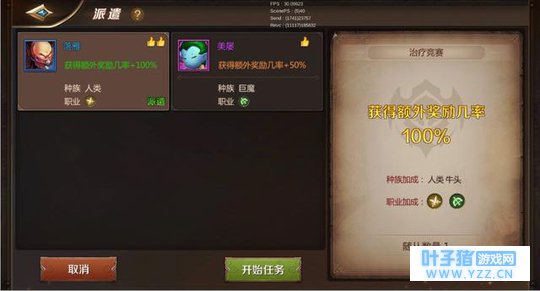 点击要塞右侧任务描述中的“+”,进入到随从派遣界面,界面左侧罗列当前所拥有的未派遣随从,每个任务至少都有一个种族和一个职业的加成,点击左侧随从选中之后,当随从满足种族或职业加成的时候都会增加获得特殊奖励的几率,成功率会显示在右侧。