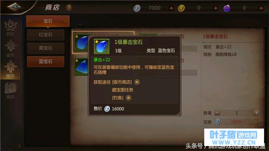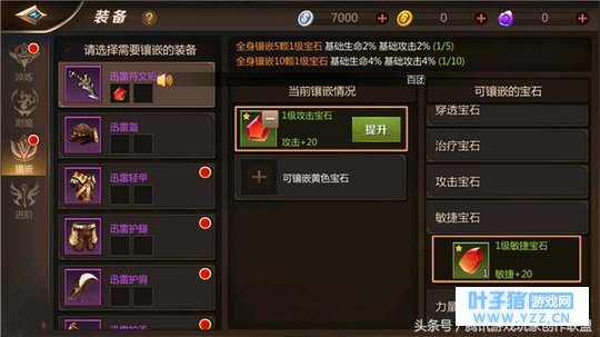 宝石镶嵌推荐 红色宝石:敏捷、攻击 黄色宝石;耐力、生命 蓝色宝石:暴击