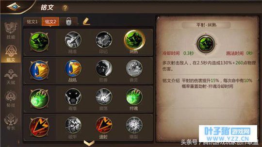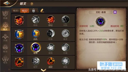 这个打法的特点是,平射伤害比第一种套路要高一些(使用印记铭文或者精准铭文),另外,在为目标叠加了5层毒之后,劲射-毒爆技能的伤害会远远超过劲射-狩魂(劲射-毒爆伤害与毒药层数有关)!