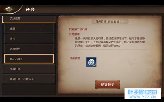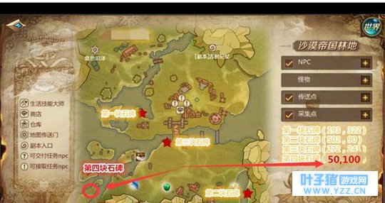 历史石碑任务是在沙漠帝国林地完成的,由于是20级左右的地图做主线之余完成,这样会节省很多跑图时间。通过和地图上第一块石碑交谈开启任务。